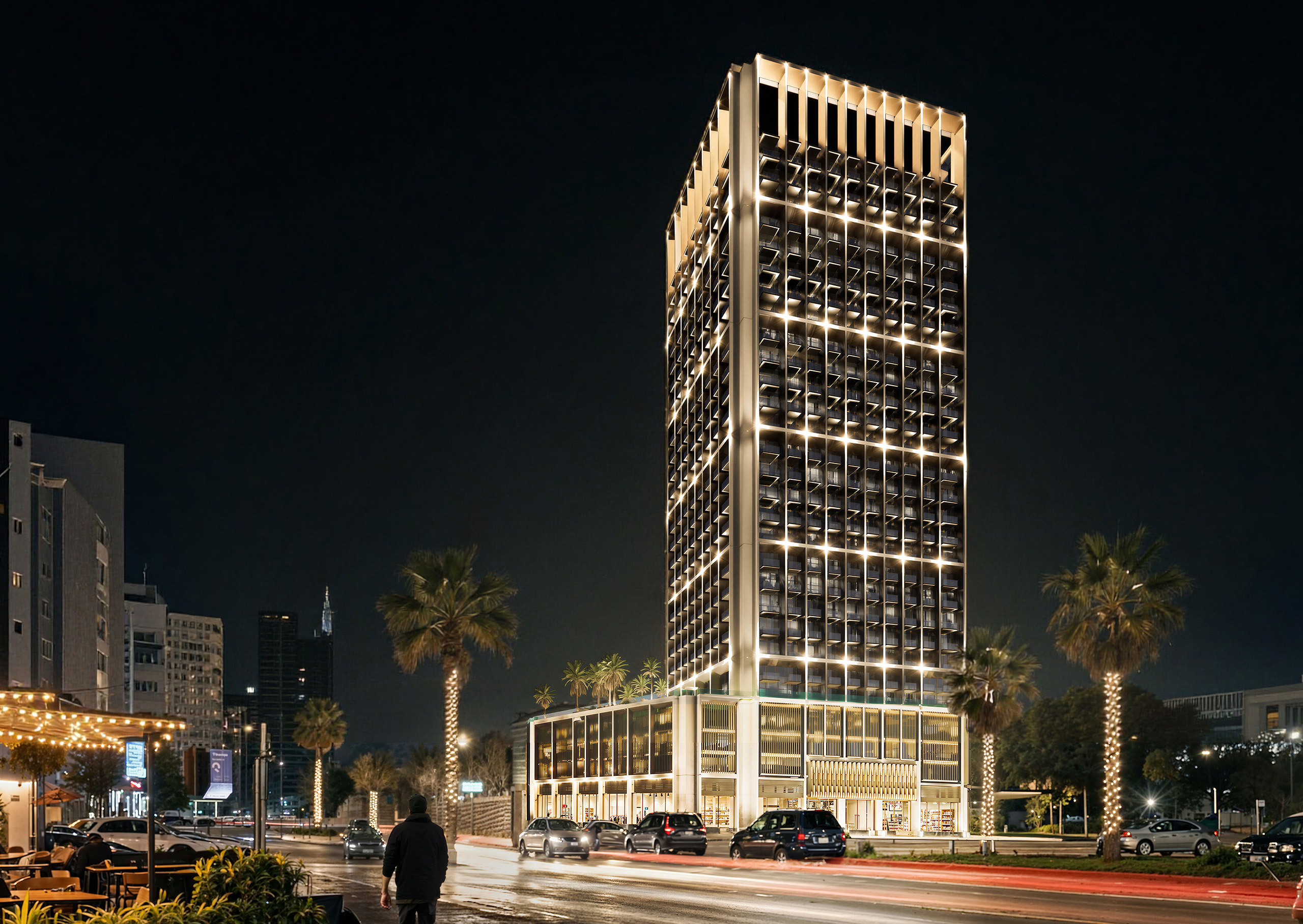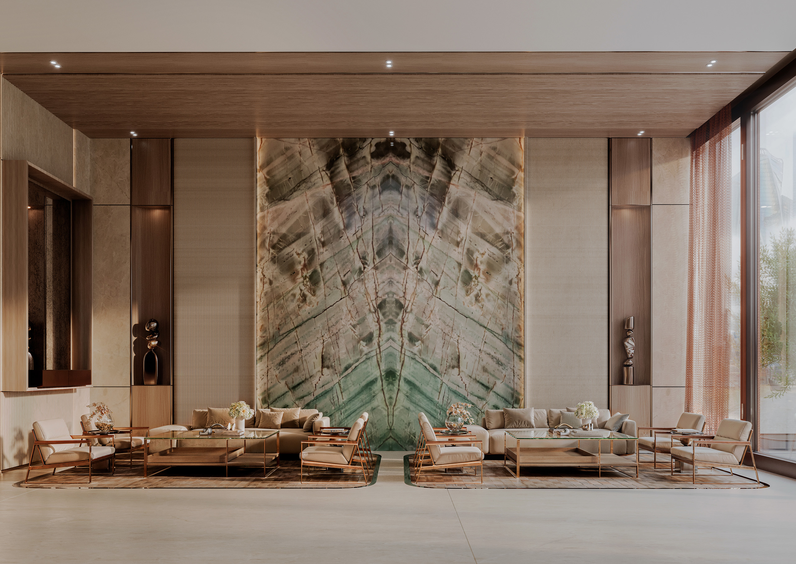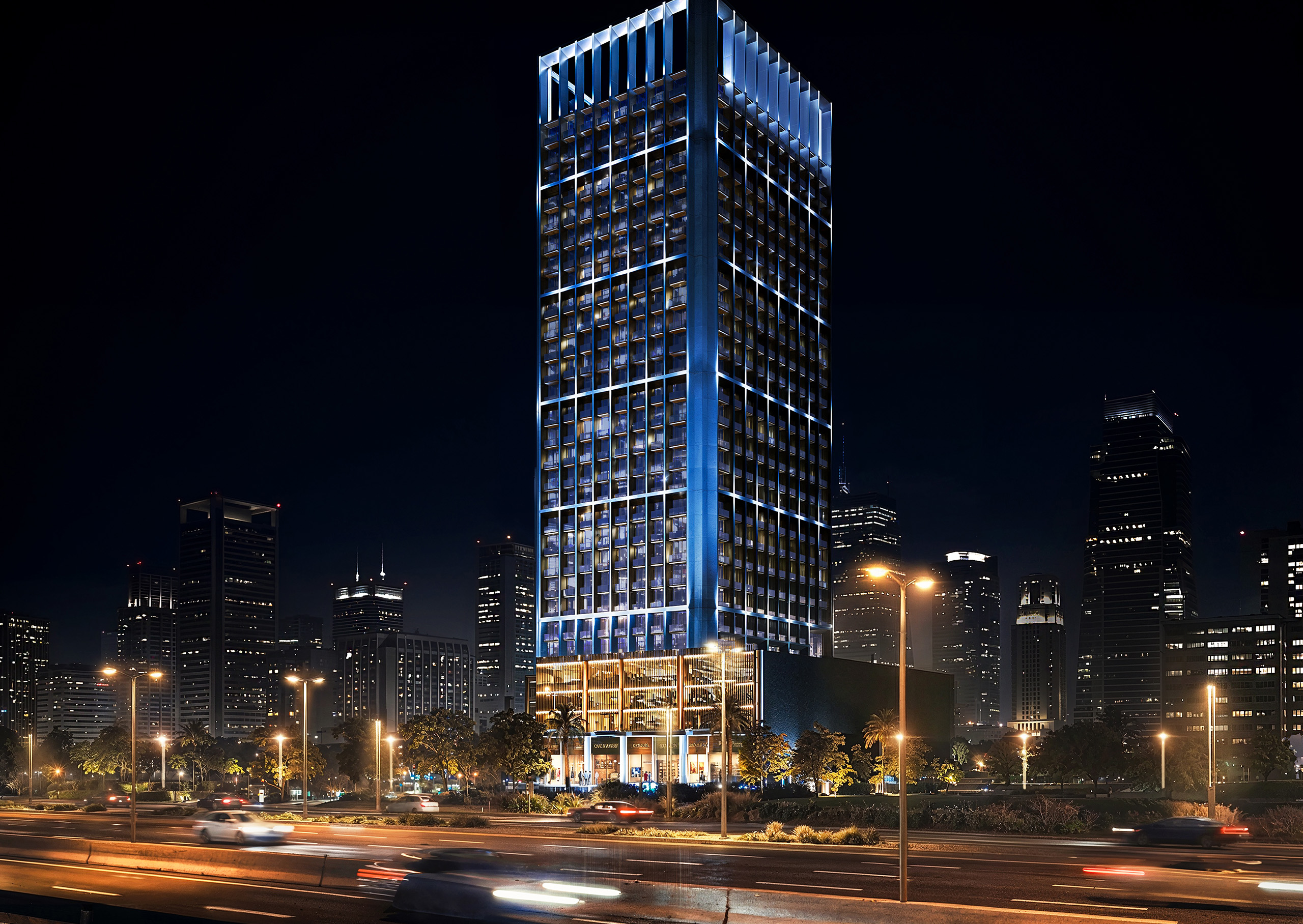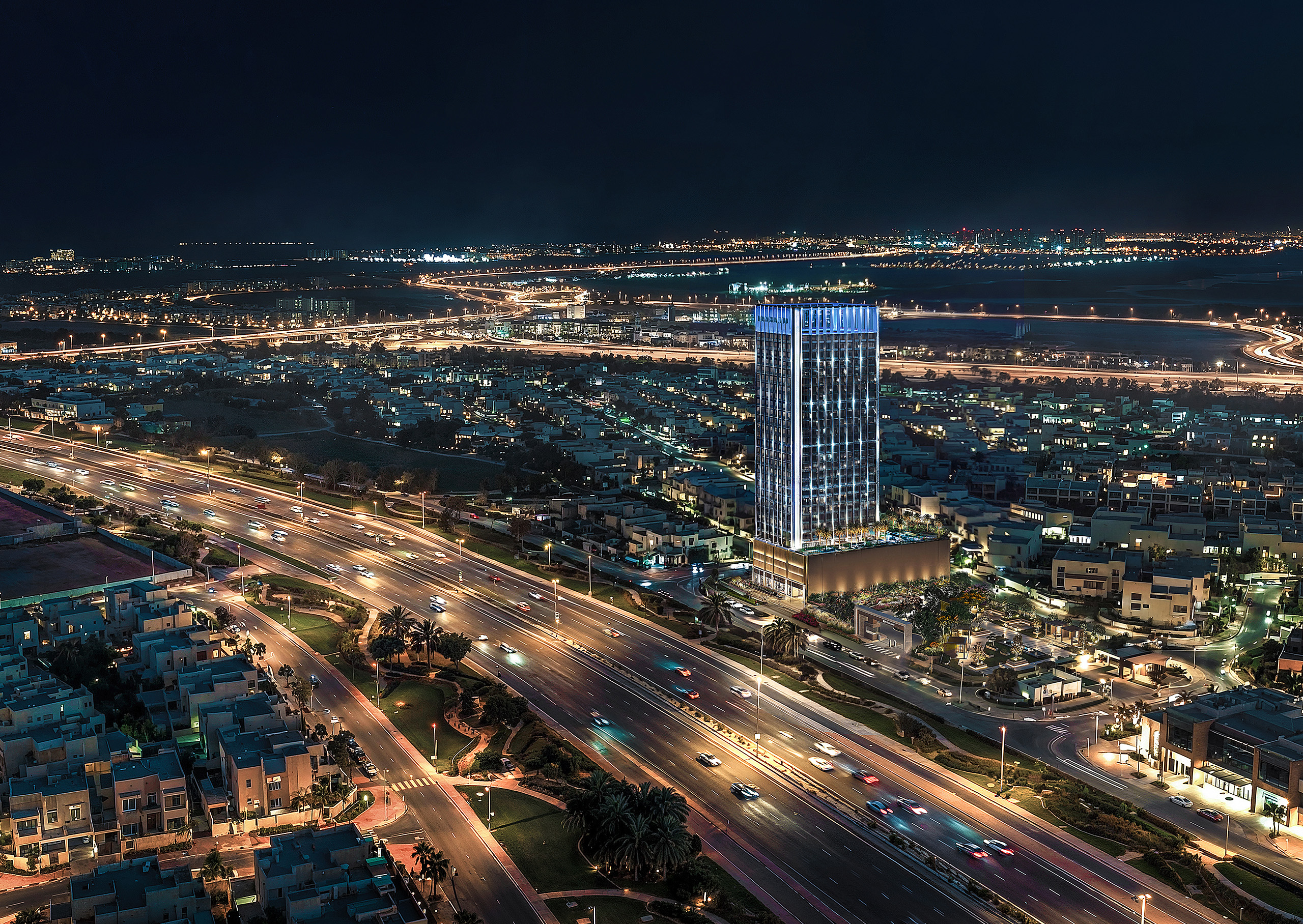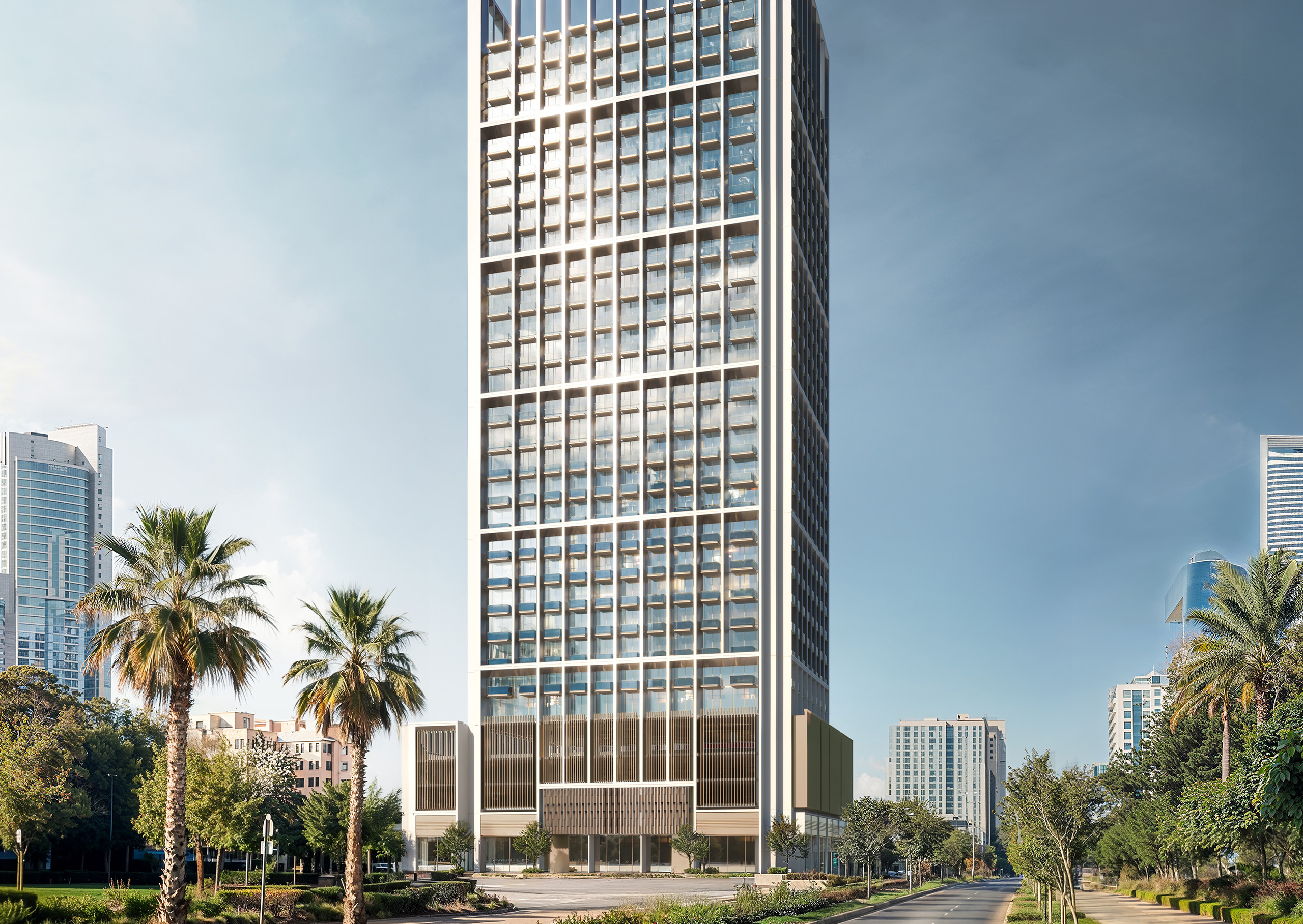 • Sleek architectural form and curved façade offering panoramic views.