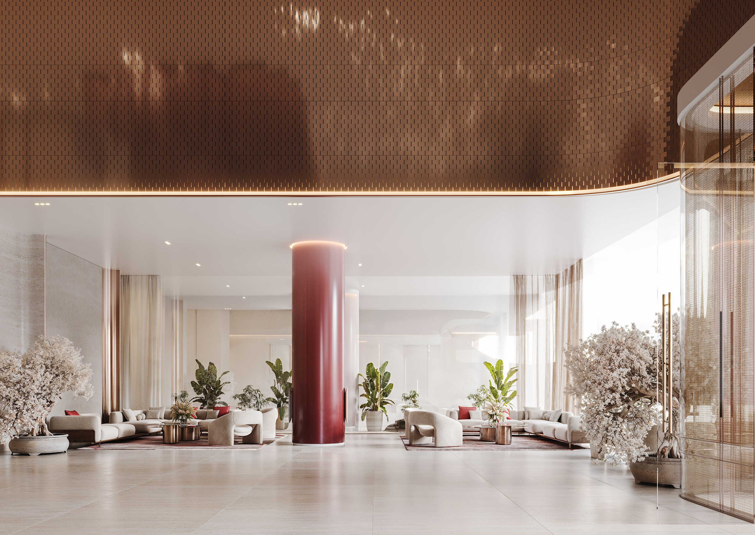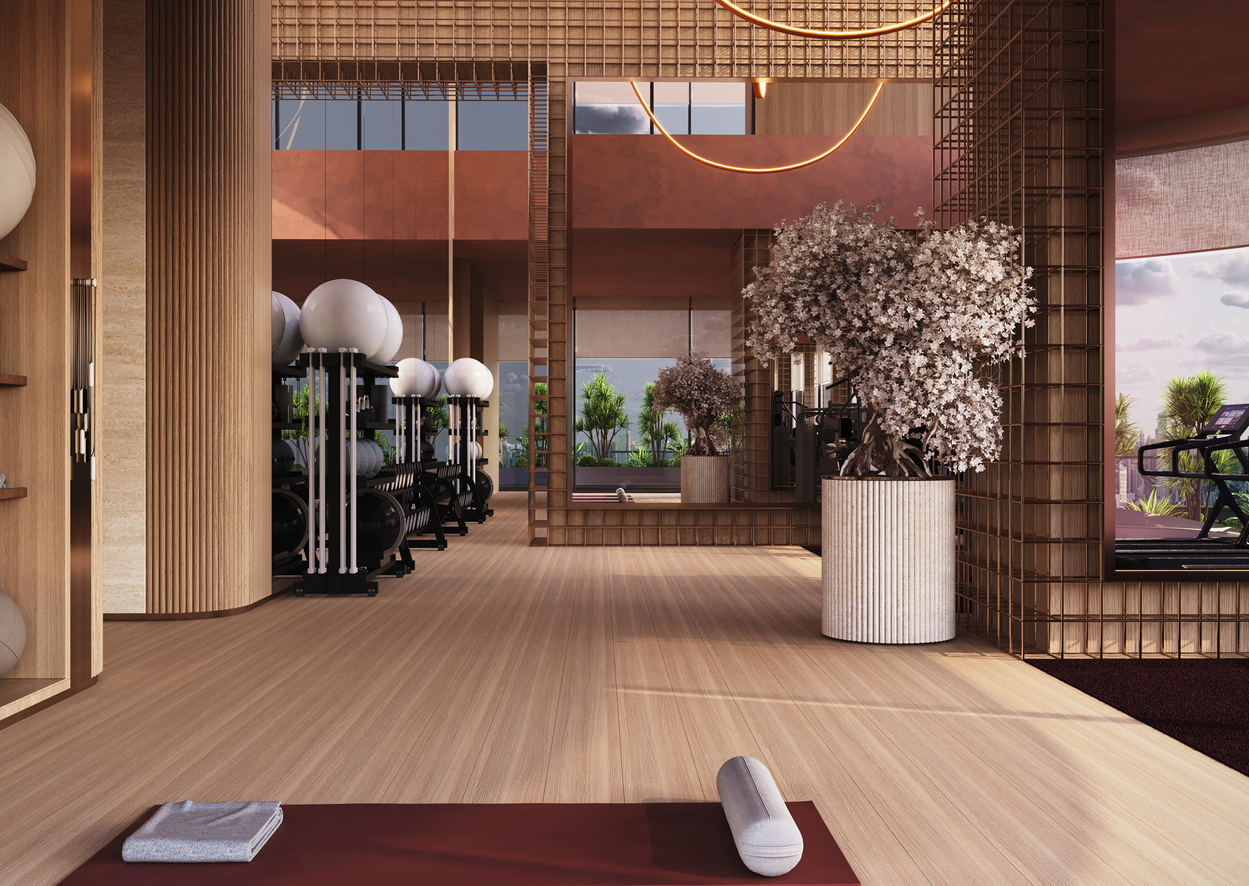 - Garden-floor in the sky: landscaped terrace lounge areas elevated mid-tower