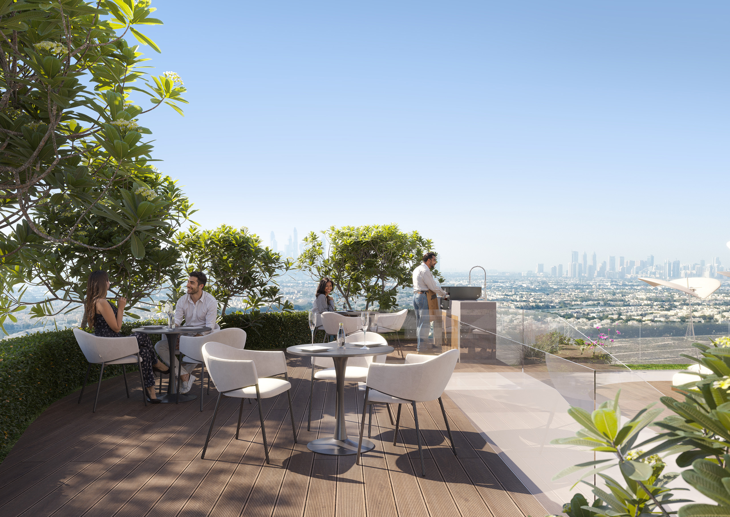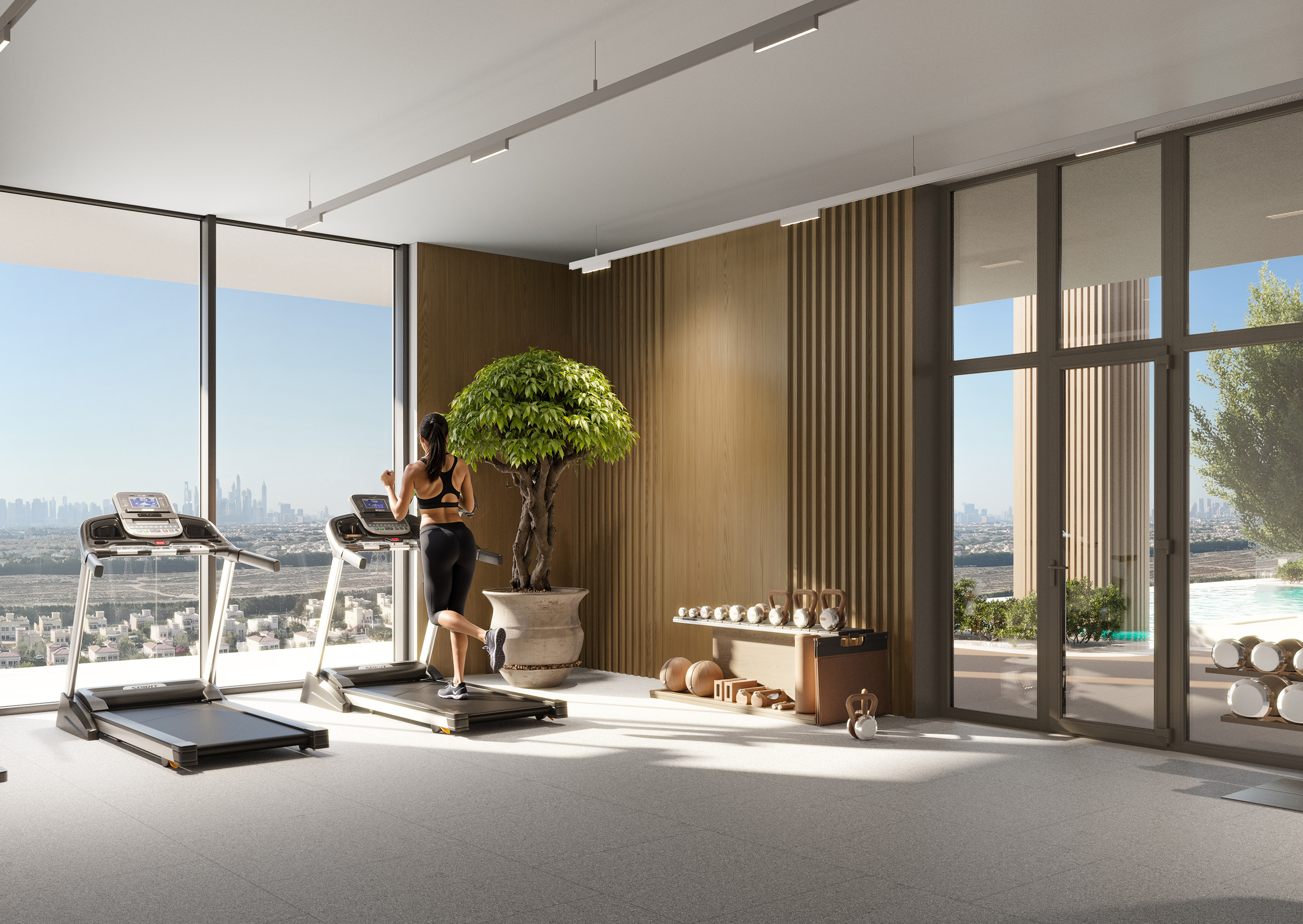 The interiors feature refined elements like textured timber, matte stone finishes, and sound-insulated glazing, all paired with premium European sanitaryware. The design also includes smart climate panels, hidden storage solutions, and professionally designed kitchens that reflect modern elegance and functionality.